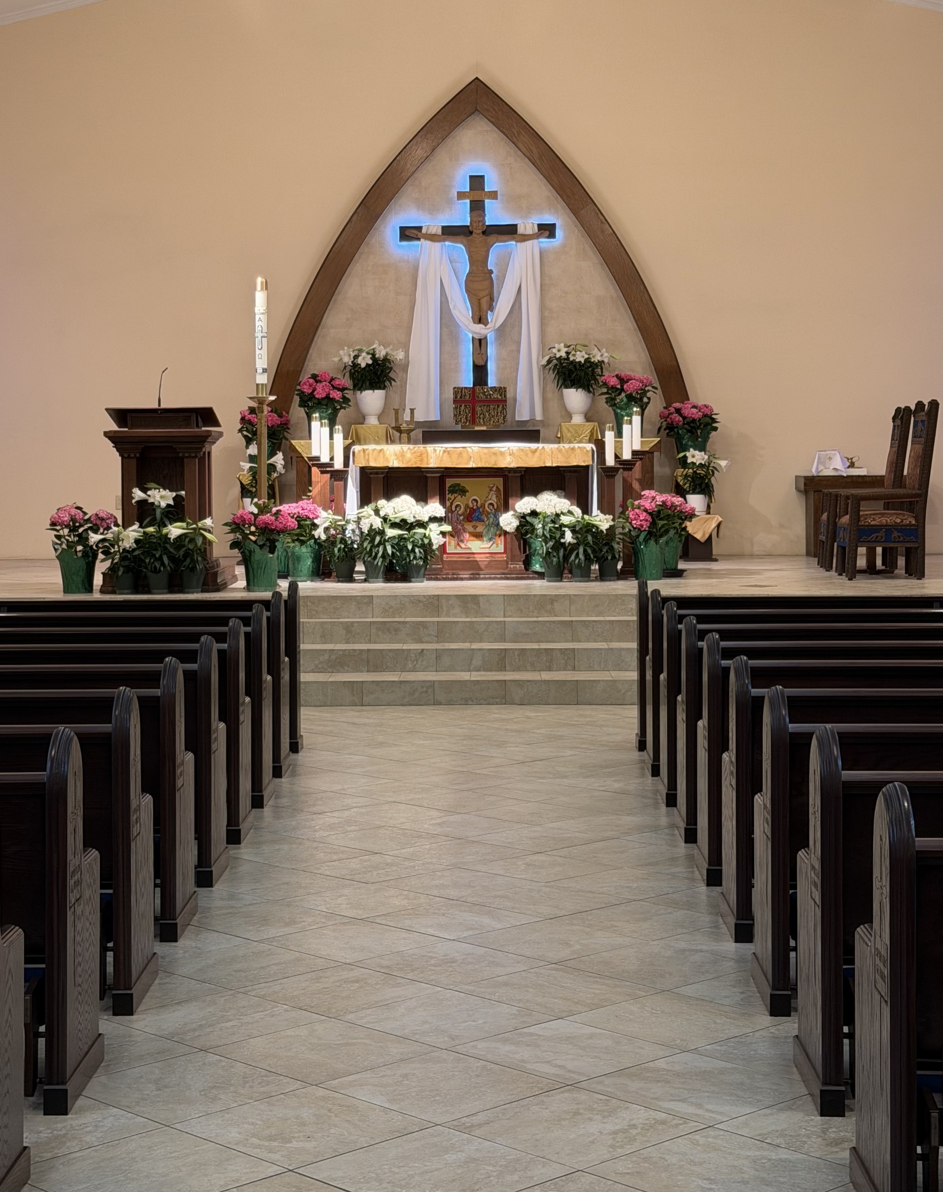 We have plenty of parking directly in front of the church, but if you need you can park in the rear of the church during Mass times on the weekend.