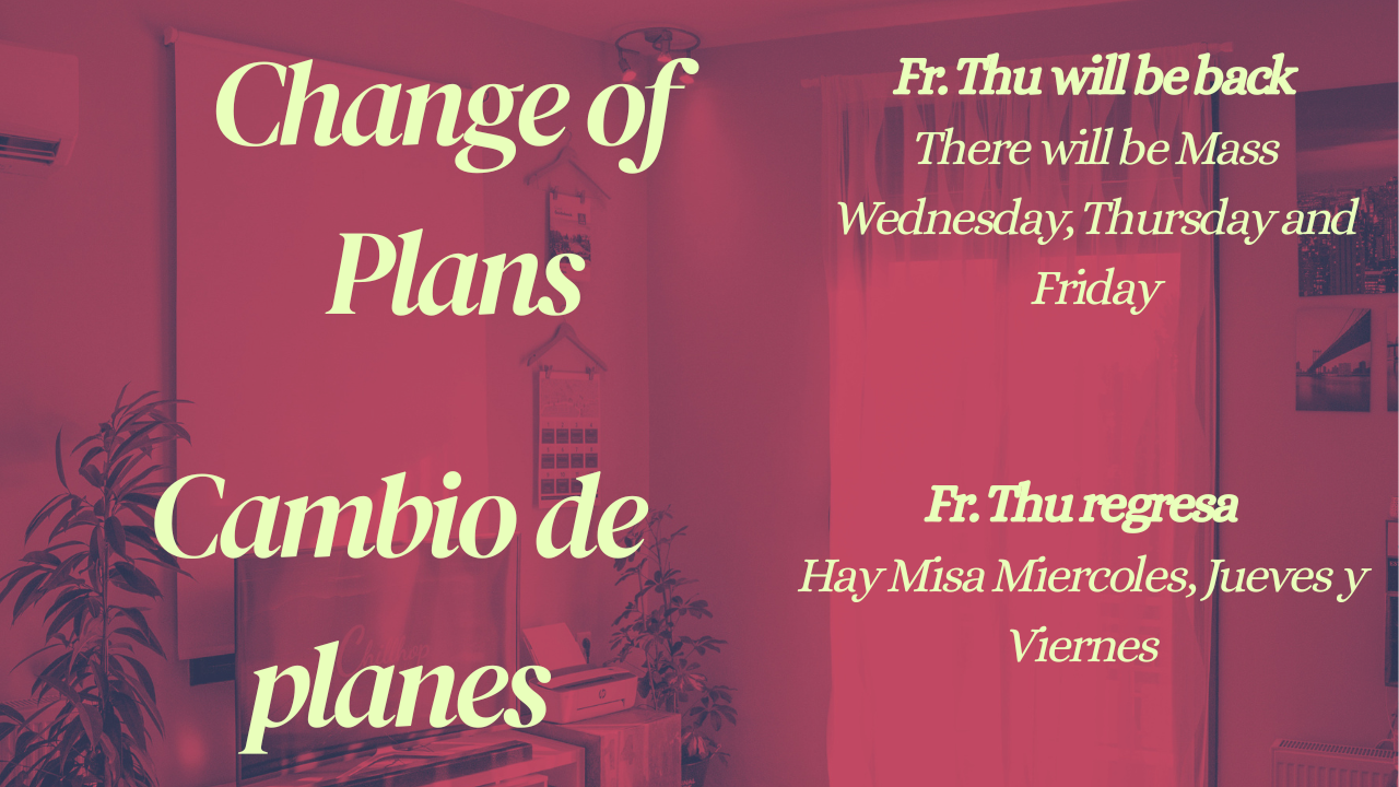 Change of plans. There will be Mass this Wednesday, Thursday and Friday.