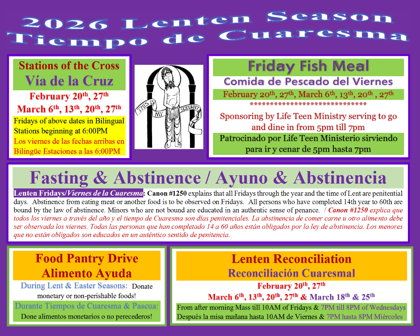 - Friday Fish Meal sponsoring by Life Teen Ministry from 5PM till 7PM to go or dine in