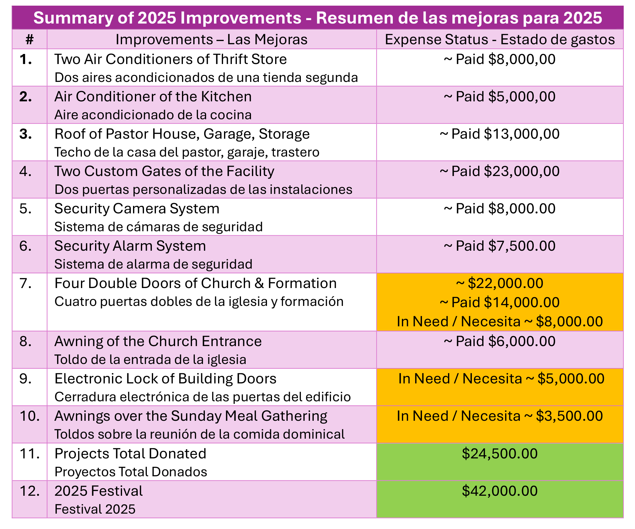 Here is the general information to all of the progress of our parish projects.  All generous donations are appreciated to complete this year.
